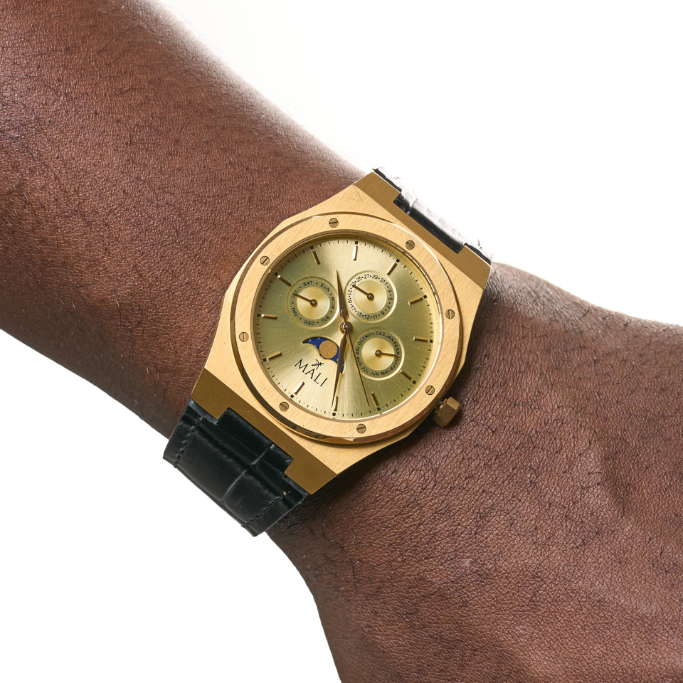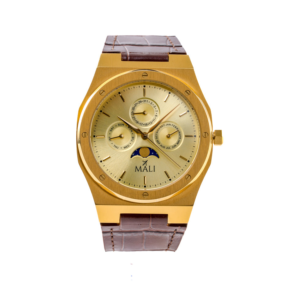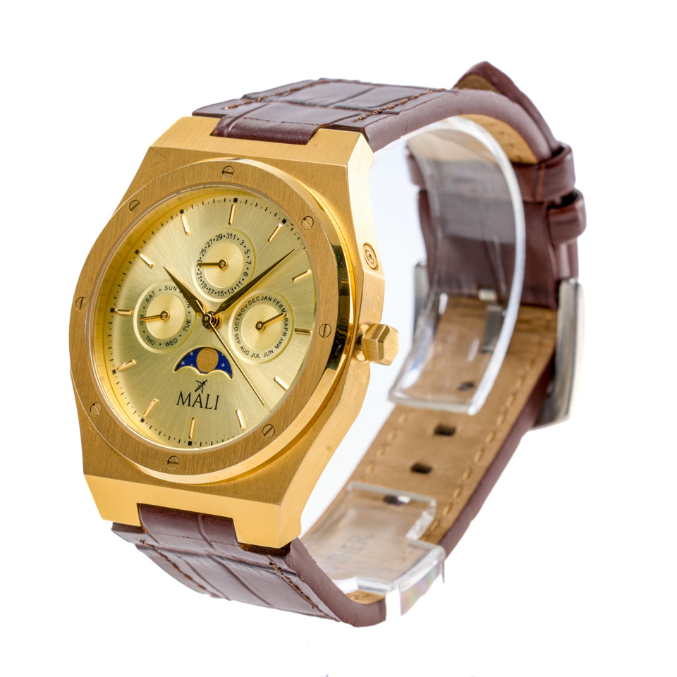 Premium Limited Edition Luxury Timepiece with with a sophisticated moon face design, month, day, week functions with sapphire crystal cover. The timepiece is waterproof up to 50M
