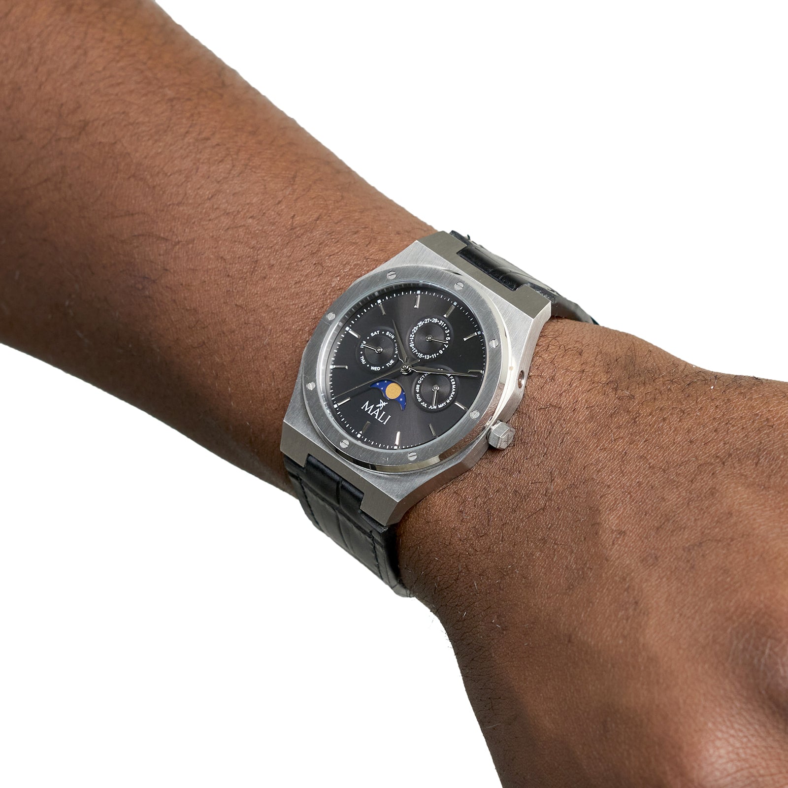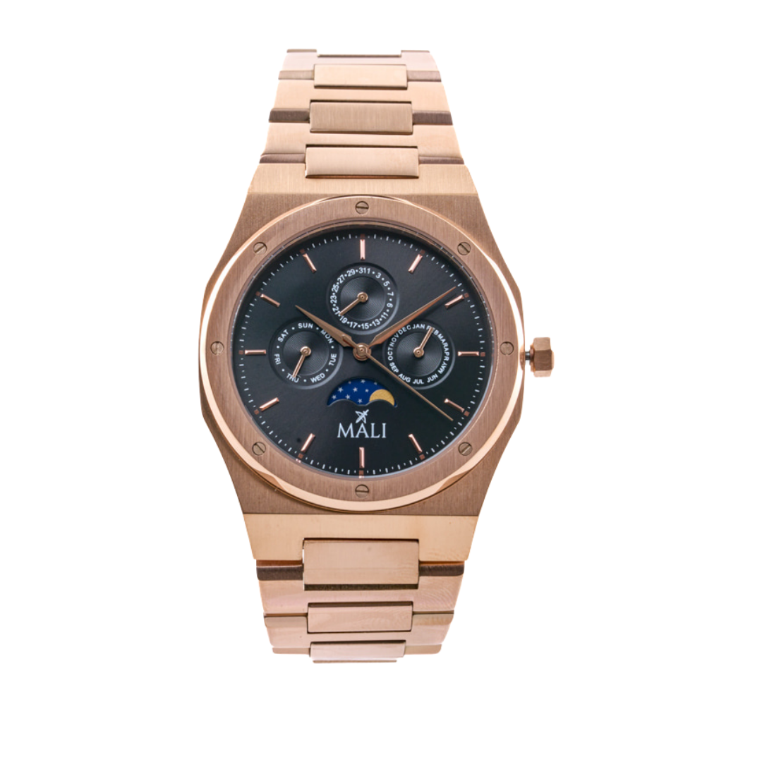 Premium Limited Edition Luxury Timepiece with with a sophisticated moon face design, month, day, week functions with sapphire crystal cover. The timepiece is waterproof up to 50M