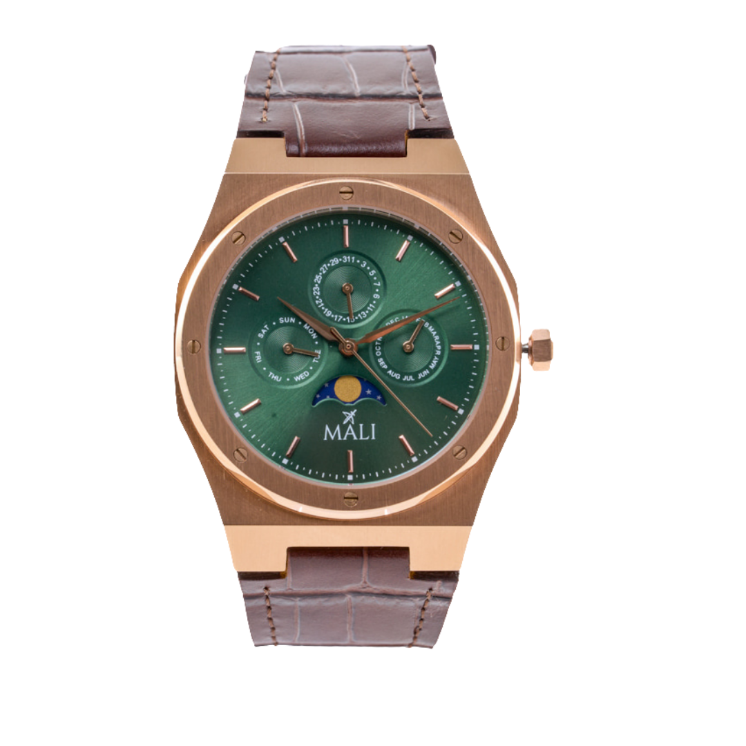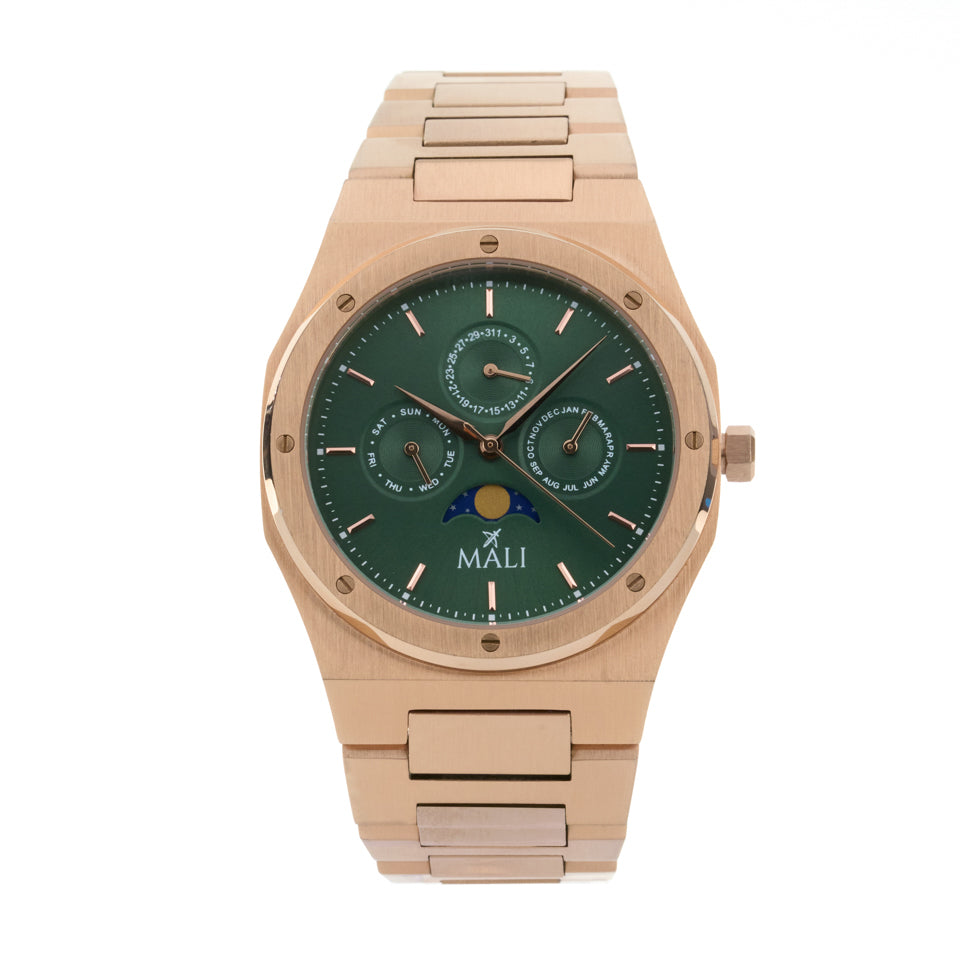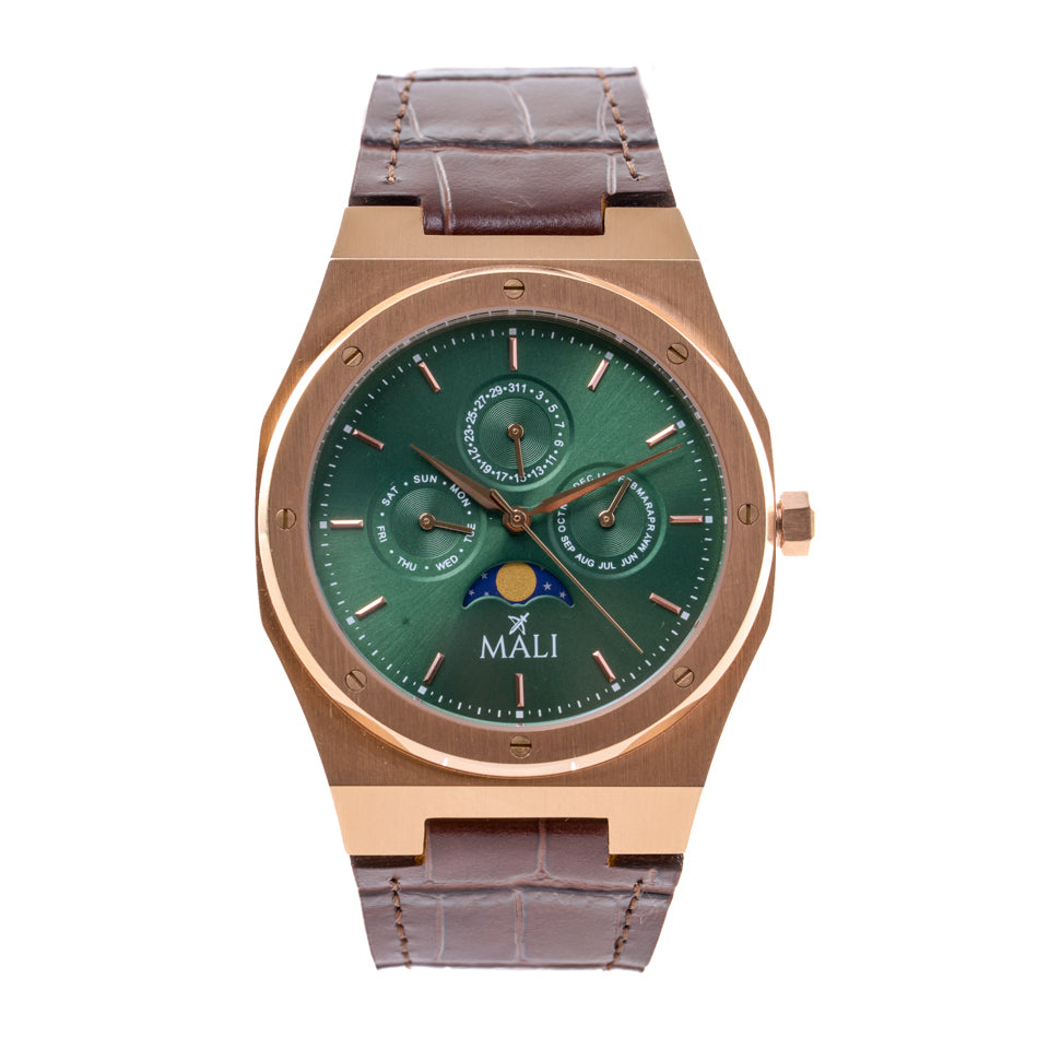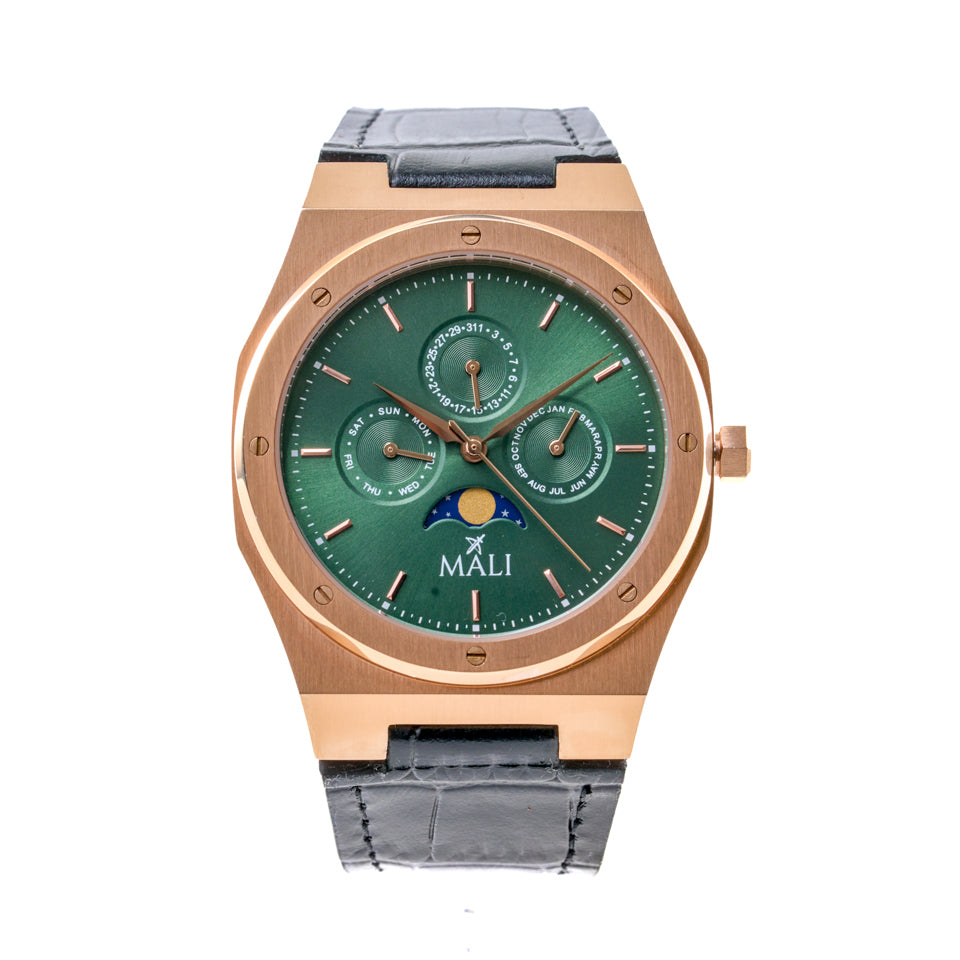 Premium Limited Edition Luxury Timepiece with with a sophisticated moon face design, month, day, week functions with sapphire crystal cover. The timepiece is waterproof up to 50M